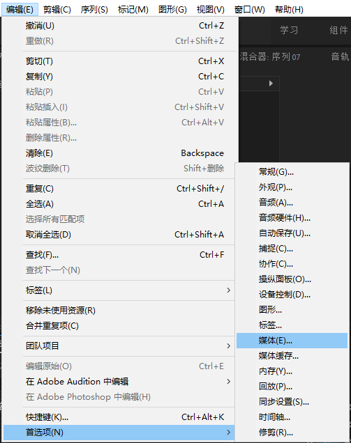3、接着点击文件-导出媒体。记住去黑边是在导出媒体时设置的。