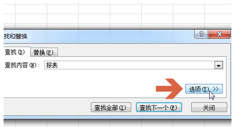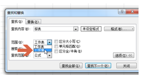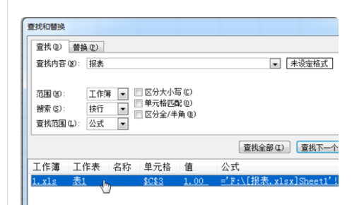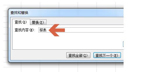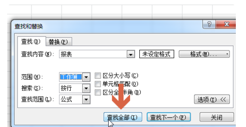 5、在查找内容处输入链接的文件名。本例中是“报表”。