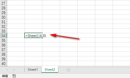 3、如果要在Sheet2中任意zhuan单元格链接Sheet1中A35单元格的话,输入公式=Sheet1!A35。