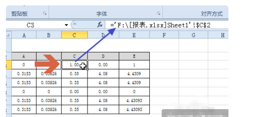 9、跳转到该单元格后,从编辑栏处可看出,该单元格的公式中包含到其他excel文件的引用链接。如果需要修改,在编辑栏处进行修改即可。