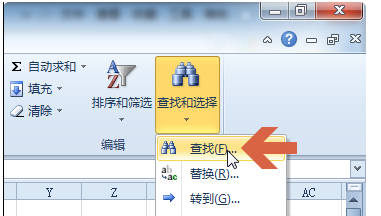 4、再点击打开“开始”选项卡,点击“查找和选择”按钮中的“查找”,或者按键盘的“ctrl+F”键打开查找界面。