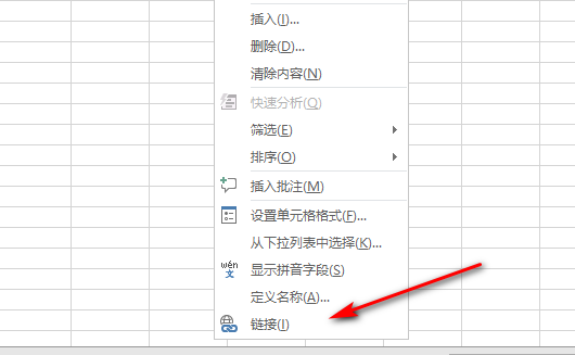 2、选中单元格后,点击鼠标右键,选择超链接。
