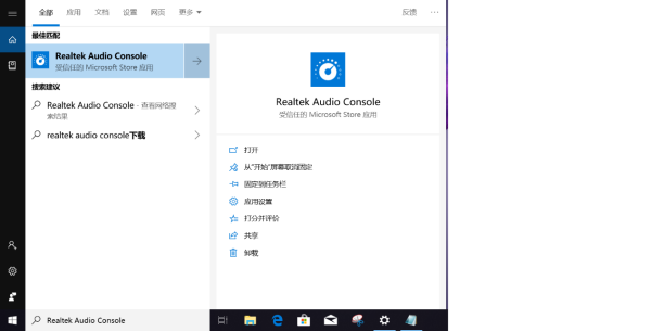 在Windows搜索框中输入“Realtek Audio Console”并打开;