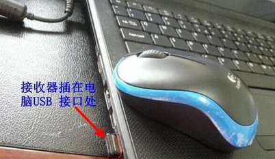 2、我们将无线接收器插到USB端口上,现在的键盘和鼠标都是无驱动就可以使用的,也就是说只要插上这个无线接收器,鼠标就可以用了。