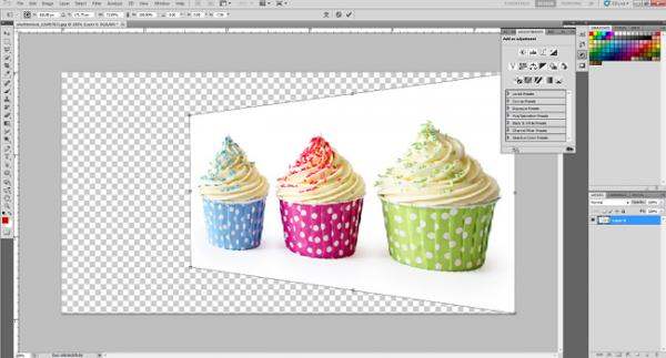 若要扭曲或者曲化图像只需使用“Ctrl+T”,随后将光标放在想要扭曲的边角。按着”Ctrl“同时按下鼠标,将边角拖拉到你设想的地方。点击”Enter”完成操作。