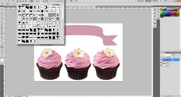 在自定义形状工具右边会出现形状微缩图。其选择丰富,甚至通过点击面板右边的箭头你可以看到更多的形状。