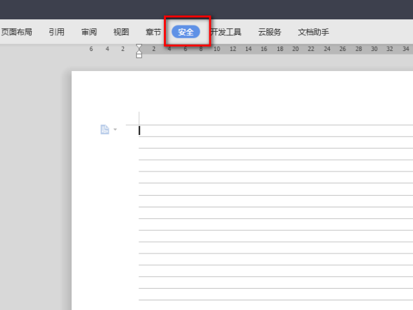 1、打开word文档,在文档页面中找到安全选项,点击该选项进入至安全主页面中。