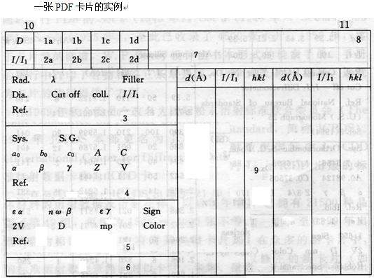PDF(或JCPDS或ASTM)卡片各栏的内容: