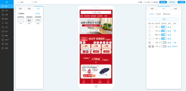 商品上架完成之后,可以对店铺进装修,在页面管理页面进行编辑,针对店铺商品情况、营销活动等,进行重整排版,打造个性化店铺。