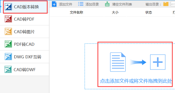 2.打开软件在最左侧找到CAD版本转换并点击一下,然后点击添加文件