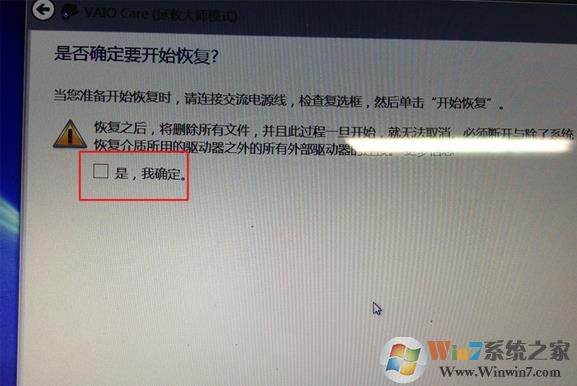 8、询问是否要开始恢复,勾选“是,我确定”,根据步骤一步步操作;