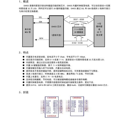 ZLG72128是广州周立功单片机科技有限公司自行设计的数码管驱动管理键盘扫描芯片。具有以下八大功能特点! 1、驱动多达12位数码管 无需外置驱动器件,可直接驱动1英寸以下8段12位共阴式数码管或96只独立的LED,支持BCD译码方式,具有位闪烁、位消隐、段点亮、段熄灭、循环移动等功能。(用数码管作为背景) 2、管理多达32个按键 内置消抖功能,能够管理多达32个按键。当按下某个键时,ZLG72128的INT引脚会产生一个低电平的中断请求信号,MCU检测到信号后再读取键值,高效且节能。(用按键作为背景) 3、8大功能组合键 功能强劲的组合键,可以实现2键、3键及以上多键组合,无需设置多级菜单,tm1650为什么一需要应答信号