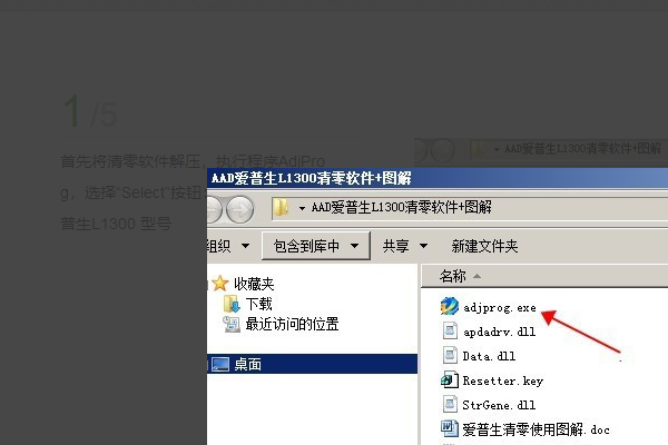 1、首先打开计算机,在计算机内将清零软件解压,执行程序AdjProg,选择“Select”按钮: 选择打印机型号爱普生L1300 型号。