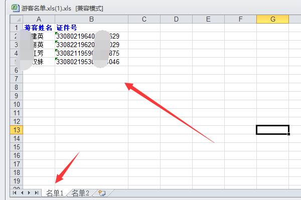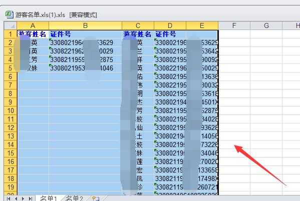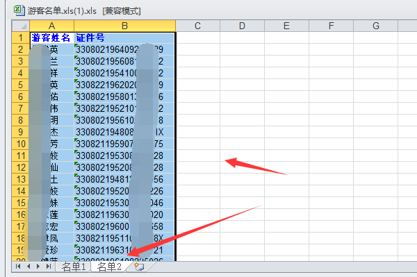 1、在电脑上打开一个EXCEL文件,当前名单1表格中有较少的数据。