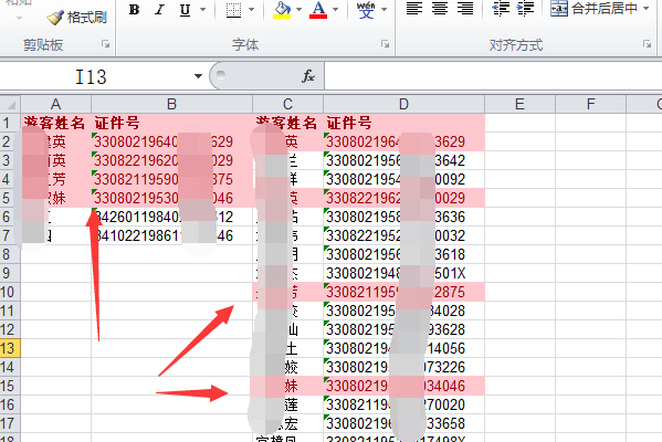 A、B两个表格都有姓名、身份证号等信息,A表的数据比B表的多,怎么样才能快速的核对两表找出不同的地方