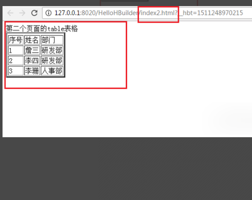 4、然后,新的第二个html页面存储一个表,如下图所示。