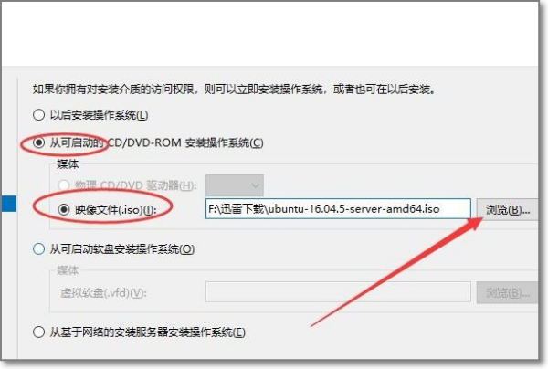 8、安装选项,这个很重要,把上面下载好的ubuntu镜像文件加载到安装选项。