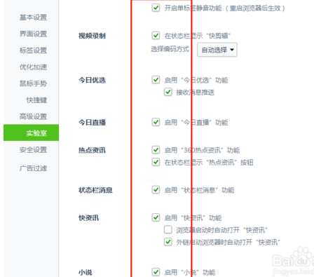 4、在实验室中,可以查看到“热点资讯”、“今日直播”,“推荐”等都被启用: