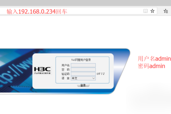 h3c交换机默认登录账户和默认密码为admin。启动IE浏览器,在地址栏中键入h3c交换机的的工作网口IP地址,并在后面键入/gk(如:http://10.100.5.1/gk,其中10.100.5.1为ME5000的工作网口IP地址)。