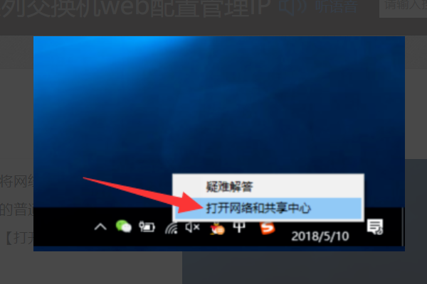 1、将交换机接上电源,并将网线的一端接上电脑,另一端接上交换机的普通端口上,右键点击右下角的网络图标【打开网络和共享中心】。