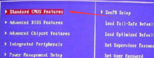 3.开机的时候快速按DEL键进入BIOS,然后找到 “Standard CMOS Featrues”这个选项回车。