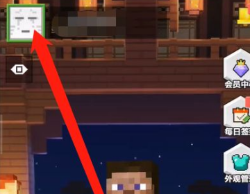 1、首先点击进入到我的世界游戏,点击左上角的角色头像图标,如下图所示。