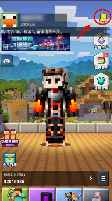 1、首先点击进入到我的世界游戏,点击左上角的角色头像图标。