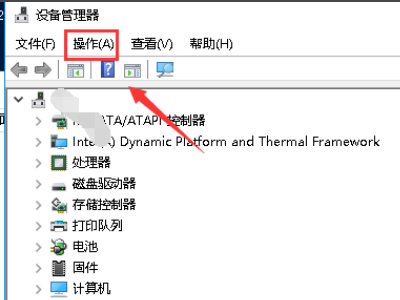 3、进入设备管理器,点击上面的操作,如下图所示。