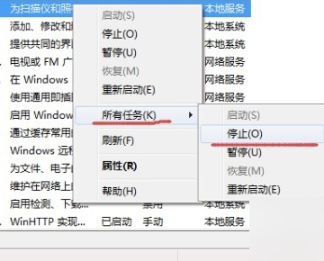 如果wia无法关闭,应该是stisvc服务问题,调出任务管理器,在出现的菜单面板里面选择服务,找到stisvc服务。
