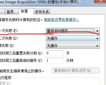 4、接着点击恢复选项卡,第一次失败改为 “重新启动服务”,如下图所示。