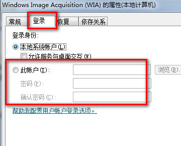 3、然后在打开的页面中,登录选项卡设置“本地系统账户”,如下图所示。