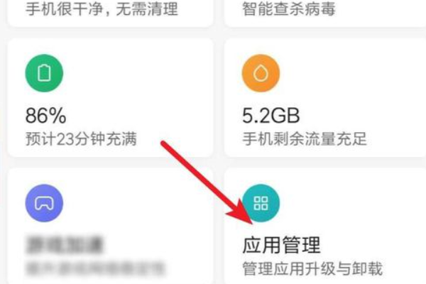 2、然后在安全中心界面中找到应用管理选项点击进入。