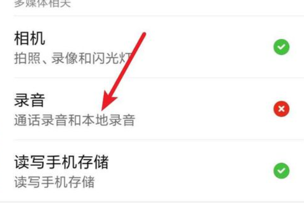 5、再然后在应用权限详情页中找到录音选项点击进入。