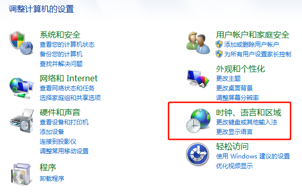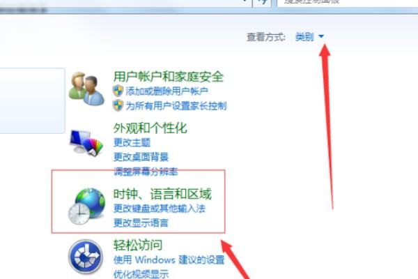 2、将右上角查看方式更改为“类别”,点击下方的“时钟、语言和区域”。