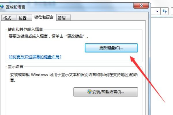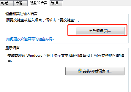 4、弹出的窗口中,点击“键盘和语言”下的“更改键盘”。