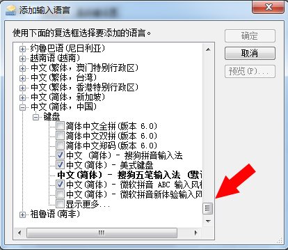 4、拉动滑杆,选择自己所需要添加的输入法。