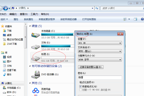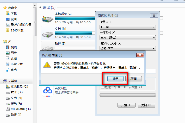 5、接着,选择确定点击格式化,移动硬盘应该就可以修复了。