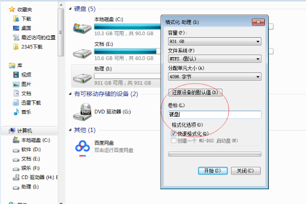 4、为了和电脑以示区分,可以给该移动硬盘起个名字。