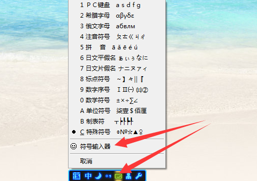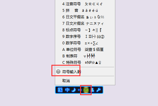 一、首先是带圈1—20,使用任意一种带有符号输入器的输入法(这里用QQ五笔演示),右键点击输入法状态栏,弹出选项中打开输入法符号输入器。