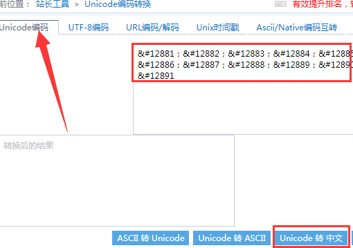三、 带圈21—30稍微麻烦一些,只能转换,打开浏览器搜索并打开Unicode编码转换站长工具(也可以使用其它在线转换工具)。