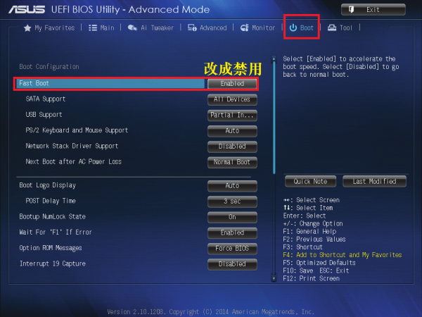 点击进入Boot菜单,里面第一项就是:Fast Boot(快速启动),把这一项改成Disable的禁用;