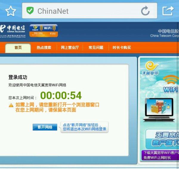 第一步,在中国电信的热点区域,连接上标识为“ChinaNet”无线信号,如果下载天翼宽带客户端(手机版和电脑版),启动客户端即可连接WiFi。