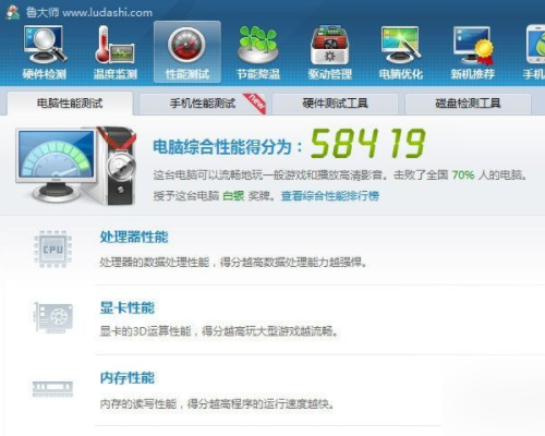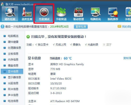 5、鲁大师软件,电脑性能测试结果如下图所示,看出显卡是否有问题了。