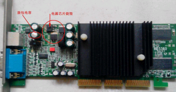 显卡元器件损坏故障通常会造成电脑无法开机、系统不稳定死机、花屏等故障现象。显卡元器件损坏一般包括显卡芯片损坏、显卡BIOS损坏、显存损坏、显卡电容损坏或场效应管损坏等。对于显卡元器件损坏故障一般需要仔细测量显卡电路中的各个信号来判断损坏的元器件,找到损坏的元器件后,进行更换即可。