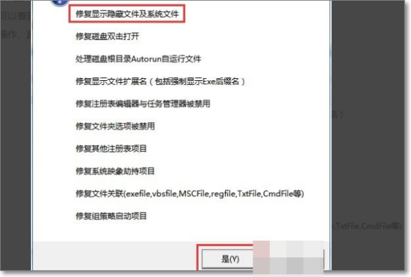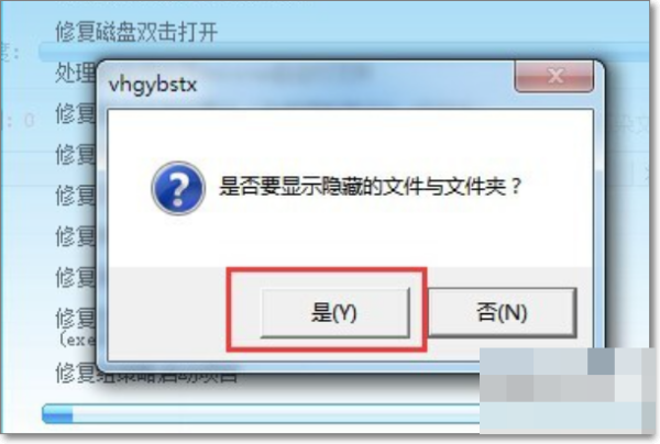 14、此时将弹出“是否显示隐藏的文件和文件夹”窗口时,点击“是”按钮,此时将全部恢复被隐藏的U盘文件和文件夹。至此,U盘中的文件被全部找回。