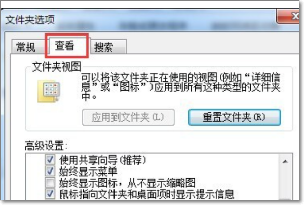 2、从打开的“文件夹选项”窗口中,切换到“查看”选项卡。