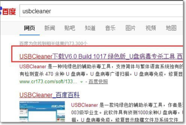 10、“usbcleaner”的免费版U盘专杀工具。直接在百度中搜索来获得工具下载地址。