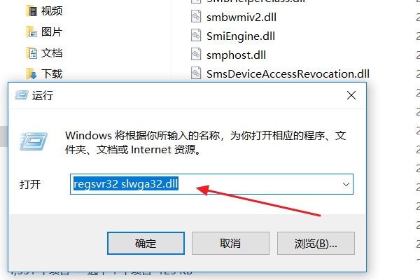 3、点击“开始菜单”,选择“运行”按钮,输入:regsvr32 slwga32.dll,点击确定。