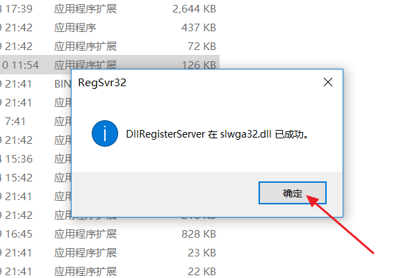 4、此时弹出安装完成slwga32.dll文件的提示,点击确定。