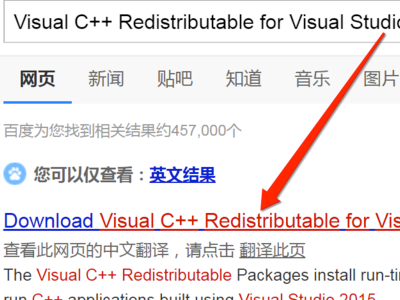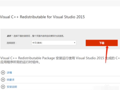 4、如果直接给系统添加上面文件后还出现其他类型的dll文件缺失,为了方便的统一更新类库,建议直接安装Visual C++ Redistributable for Visual Studio 2015来修复。